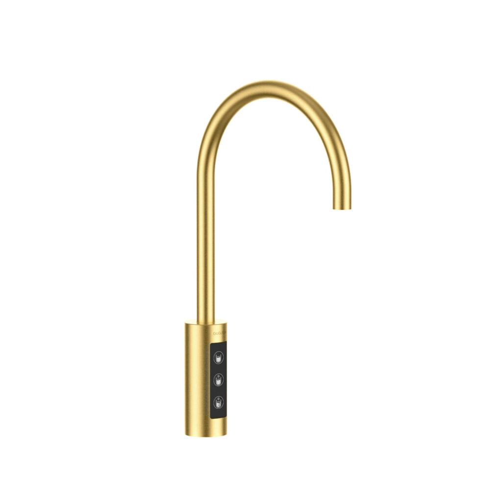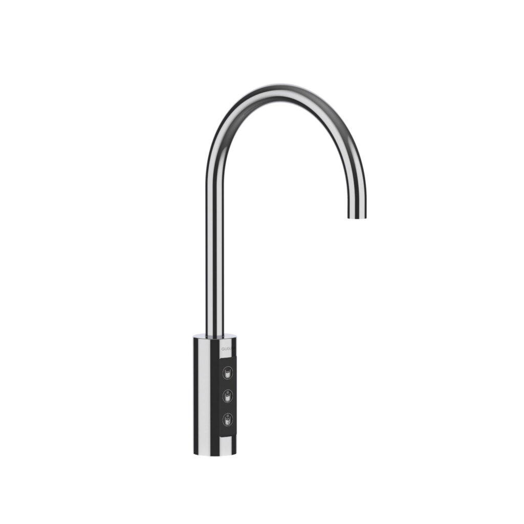 Met zijn elegante, ronde design is de Touch Bow elektrisch bedienbaar aan de voet van de inbouwkraan. De ideale partner om even te verfrissen met heerlijk gefilterd plat of bruisend water.